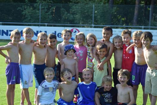 Kraftraubendes Programm stand am Vortag des Tuchbaum-Cups, anlässlich der Feierlichkeiten zum Saisonabschluß an. Planschen im Pool, Springen durch aktivierte Bodenregner, Fußballspielen bis zum Anbruch der Dämmerung und eine anschließende Nachtwanderung bereiteten unseren Kindern sichtlich Spaß und Freude, verlangten ihnen aber auch einige Energie ab. Das späte zu Bett gehen und der frühzeitige Turnierbeginn waren einer ausreichenden Erholung ebenfalls nicht zuträglich, so dass unser Team das erste Spiel, ausgerechnet gegen den unangenehmsten Gruppengegner, merklich angeschlagen absolvierte. Nichts desto trotz konnte man sich ein leistungsgerechtes Remis erkämpfen. Unsere spielerische Klasse konnten wir aufgrund der schwierigen Platzverhältnisse - staubtrocken, steinhart und absolut kompakt - nicht zu unserem Vorteil ausnutzen. Die Trainer blieben ihrer Linie dennoch treu und gaben den Spielern auch an diesem Tag durch wechselnde Positionen kognitiv herausfordernde Aufgaben. Obwohl man alle übrigen Gruppenspiele siegreich gestalten konnte, reichte es aufgrund der schlechteren Tordifferenz nicht zum Gruppensieg und somit nicht für den Finaleinzug. Die Jendrusch/Schuck-Truppe freute sich aber über Platz 3 und die damit gewonnenen Eintrittskarten fürs erste Heimspiel der Offenbacher Kickers. Wie bereits in der Vorwoche, stellte auch dieses mal ein Kicker aus unseren Reihen den "Spieler des Turniers" - Glückwunsch Giuliano! Sowohl Marvin als auch Giuliano freuten sich über diese Einzelauszeichnung, wussten aber auch bei wem sie sich bedanken durften - DER MANNSCHAFT!