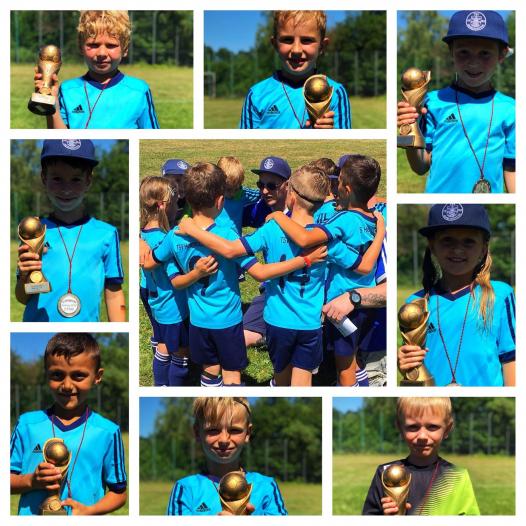 Eine besondere Einzel-Auszeichnung ging beim perfekt organisierten Turnier in Erlenbach an unseren Elijah. Trotz oder gerade wegen seines jungen Alters (Jahrgang 2013) wurde er von der Turnierleitung zum besten Spieler des U7/2 Turniers gekürt - Herzlichen Glückwunsch! Sicherlich profitierte er dabei von der überragenden Mannschaftsleistung unserer 2012er Truppe, die einmal mehr ihr fußballerisches Talent bewies. Als Höhepunkt lässt sich aber ganz bestimmt der Auftritt unseres allerjüngsten Kickers, Valerio, betiteln. Mit gerade einmal 3,5 Jahren agierte Valerio ohne Furcht zwischen den teilweise 2,5 Jahre älteren Kindern und wurde am Ende des Tages mit seiner Mannschaft zum 2. Sieger des Turniers geehrt.