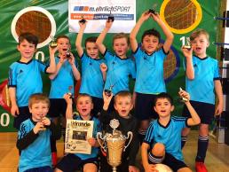 Eine phantastische Mannschaftsleistung boten unsere (diesmal ausnahmslos) Jungs beim bestens organisierten Turnier in Laufach. Die Gruppenphase wurde mit lediglich einem Gegentor abgeschlossen, da sowohl unsere gut aufgelegte Abwehr jeden Angriff des Gegners im Keim erstickte als auch Kuba hielt was doch auf seinen Kasten zugeflogen kam. Mit sicherer Ballannahme und ansehnlichem Passspiel kombinierte man sich auf dem engen Feld mit Rundumbande & -netzen ziemlich zügig vor das gegnerische Tor um dort eiskalt abzuschließen. Etwas knapper fiel das Ergebnis dann im Finale gegen den erwartet starken Gegner SG Strietwald aus. Doch auf unsere zielsicheren Stürmer war verlass, so dass auch das letzte Spiel des Turniers mit 2:1 von uns gewonnen wurde. Turniersieg! Weiter so, Jungs!